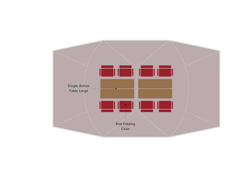 Setup as a group shelter, perfect for an outdoor meal for a large group of up to eight people.